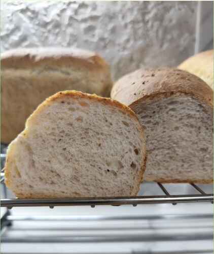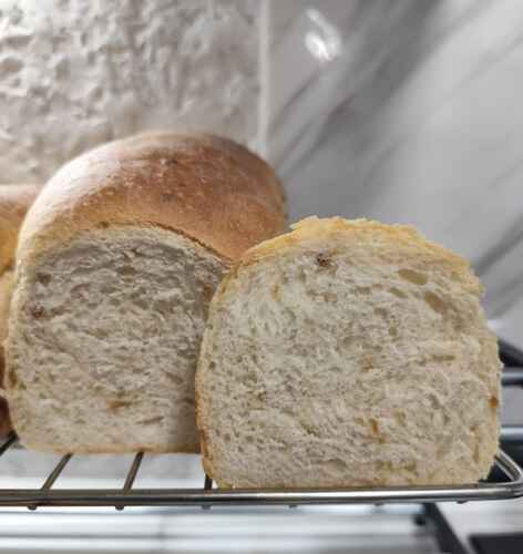 Опара.Вода 150 гр Мука 250гр Дрожжи живые 10 гр Всё перемешать и оставить на 20 мин. Тесто: вся опара, 1 чай.лож сахара Вода или молоко 150 гр Мука 250 гр Соль 1 чай.лож Растительное масло 1 ст. лож Замесить тесто,Боно получится липким, оставить на пол часа, затем сделать обминку. Так повторить ещё два раза через каждые пол часа. Сформовать хлеб, выложить в форму или на противень, дать тесту подойти. Если тесто подходит в форме мы его так и отправляем в духовку, если на противне в виде круглой буханочки остром ножом или лезвием делаем глубокий надрез в виде полумесяца. Выпекаем при 180-190° до готовности. Мой вариант сегодняшнего хлеба был немного изменён. Вечером замесила тесто в тестомесе, добавила чайную ложку без верха куркумы (хлеб получился жёлтенький), затем чашу с тестом отправила на ночь в холодильник, накрыв пакетом. Утром достала из холодильника, тесто так на столе простояло около часа- полтора, а далее как обычно сформовала и испекла.