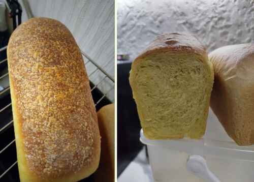Вода или молоко 340 мл Дрожжи живые 15 гр Сахар 1 ст.лож.без верх Соеденить, перемешать до растворения сахара и дрожжей. 1 ст.отваренной гречневой каша (может осталось от ужина) комнатной температуры размять чуть-чуть вилкой или в измельчителе, добавить к молоку с дрожжами. Затем добавить 2 ст,лож, растительного масла 530 гр.муки 1 чай.лож.соли Замесить тесто, оставить для подъёма, три раза сделать обминку каждые 30 мин. Сформовать выложить в форму, накрыть ,дать немного подойти и выпекать при 180° до готовности. Хлеб вкусный и ещё остатки каши пошли в дело.