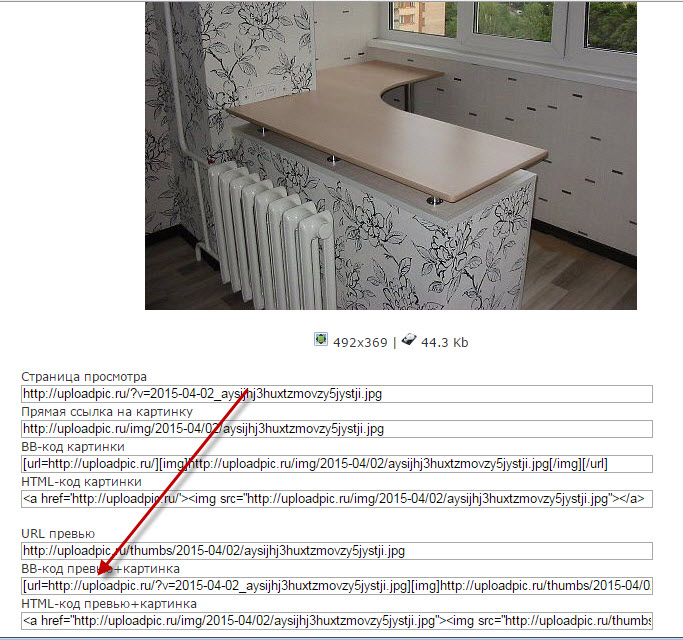 3. Выходит страница с кодами изображения. Выбираем ВВ-код превью +картинка
