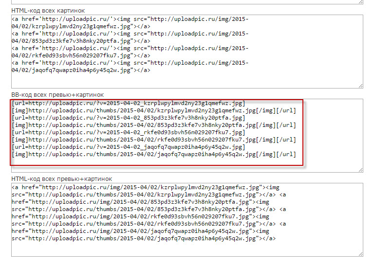 4.На странице кодов изображения копируем внизу страницы ВВ-код всех превью + картинок