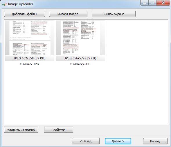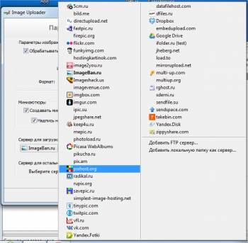 Для того что бы загрузить фото для дальнейшей публикации выбираем пункт Добавить изображения/файлы и указываем один или несколько графических файлов. Все добавленные файлы отображаются в окне предварительного просмотра. Здесь предусмотрено несколько функций, таких как удаление из списка, просмотр свойств, просмотр оригинального размера, а также редактирование (по умолчанию изображение открывается в графическом редакторе Paint). Как вариант, можно выбрать пункт Добавить папку и указать папку с изображениями. В этом случае Image Uploader загрузит всё содержимое папки.