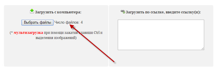 Если хотите загрузить сразу несколько изображений нажимаем Выбрать файлы, зажимаем клавишу Ctrl, выделяем нужные изображения. У вас появится Число файлов.